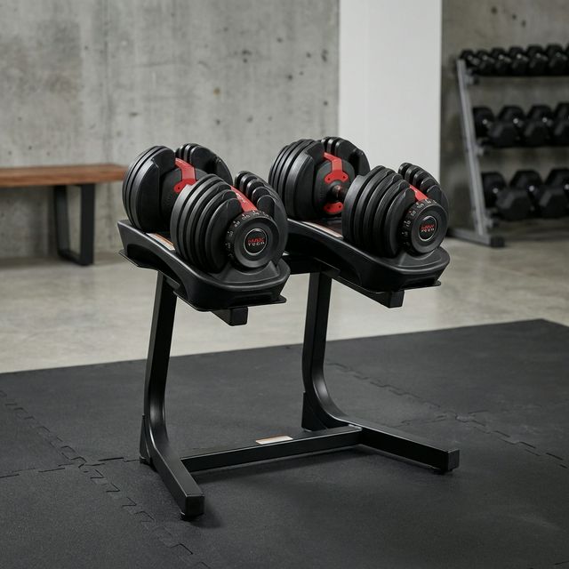 - Adjustable Dumbbells (5-52 lbs) — ~$200. The single best investment. Replaces 15+ pairs of dumbbells.